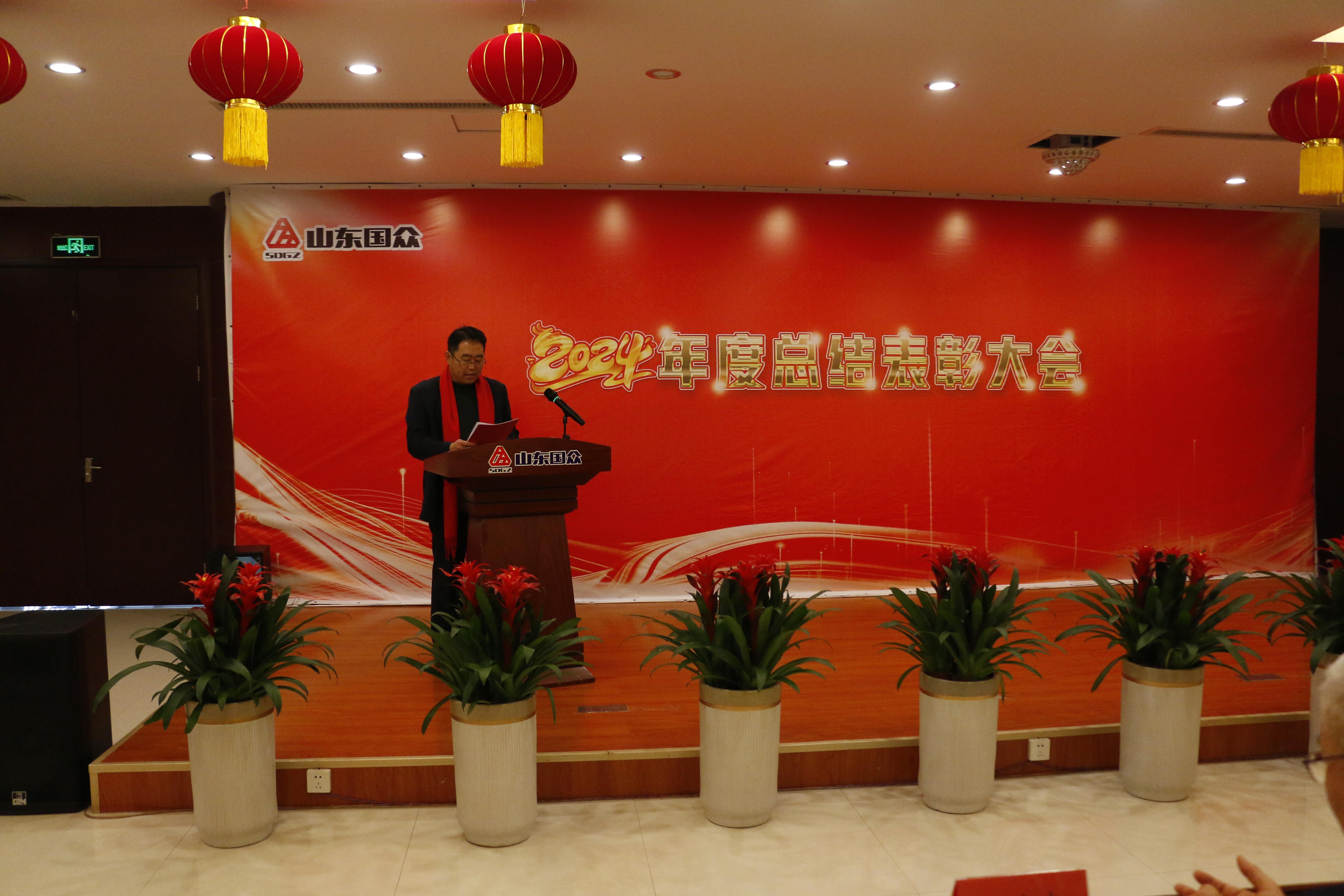 山東國眾機械科技有限公司于2025年1月26日15時在辦公樓五樓隆重召開2024年度總結(jié)表彰大會。大會對2024年度優(yōu)秀員工進行現(xiàn)場頒獎,并授予優(yōu)秀部門及合創(chuàng)社獲獎單位榮譽獎牌。公司董事長姜英杰、總經(jīng)理謝文成率領(lǐng)導(dǎo)班子成員與全體職工共同參加本次活動,現(xiàn)場氣氛熱烈莊重。